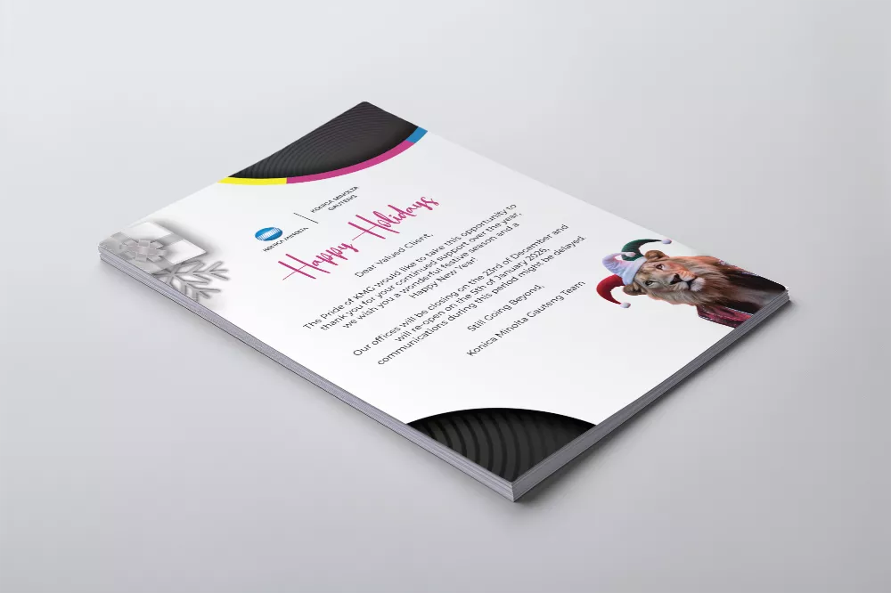 Roaring into year-end with style! 🦁✨ We created an elegant and fun client year-end letter for Konica Minolta Gauteng, featuring a bold lion and a beautifully refined layout. Strong, classy and full of festive cheer.